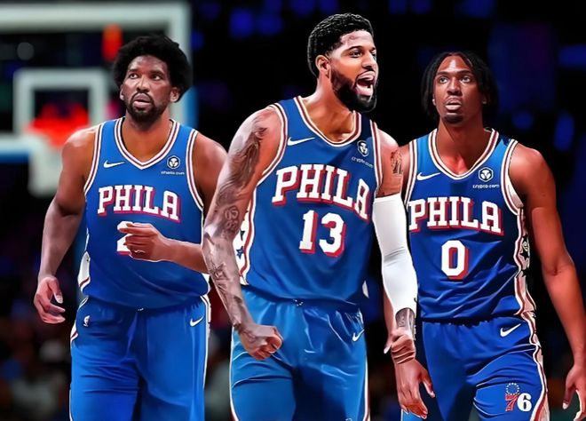结合球队薪资结构头重脚轻,恩比德、乔治、马克西本赛季薪资合计1.45亿,如果最终战绩不如预期,很可能也会考虑大破大立。