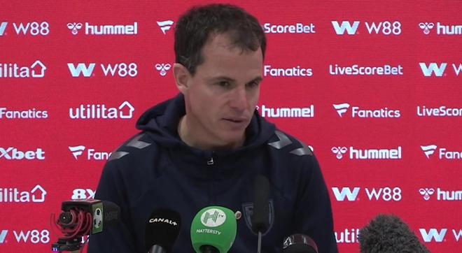 是的,对阵阿森纳这样的强队确实很艰难。上半场双方势均力敌,我们在有可能的时候尝试高位防守,也会组织紧凑、密集且富有侵略性的深度防守阵型。我们有时也能掌控球权,甚至有机会打乱他们的节奏。下半场则更艰难,长时间防守后,我们必须保持冷静控球。我们的阵容还很年轻,很多球员缺乏英超经验,能顶住压力已经很不容易。