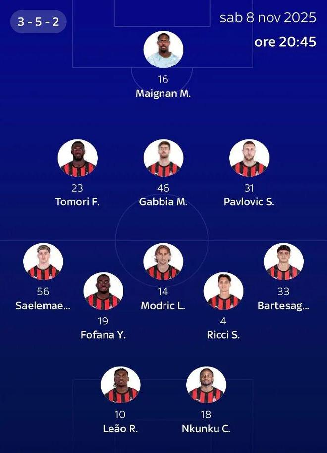 拉比奥特和希门尼斯继续单独训练,两人将缺席本轮联赛,其中拉比奥特的身体情况略好于希门尼斯。在本轮意甲联赛,阿莱格里将大体沿用上一轮的米兰首发阵容,只有托莫里将取代德温特首发。